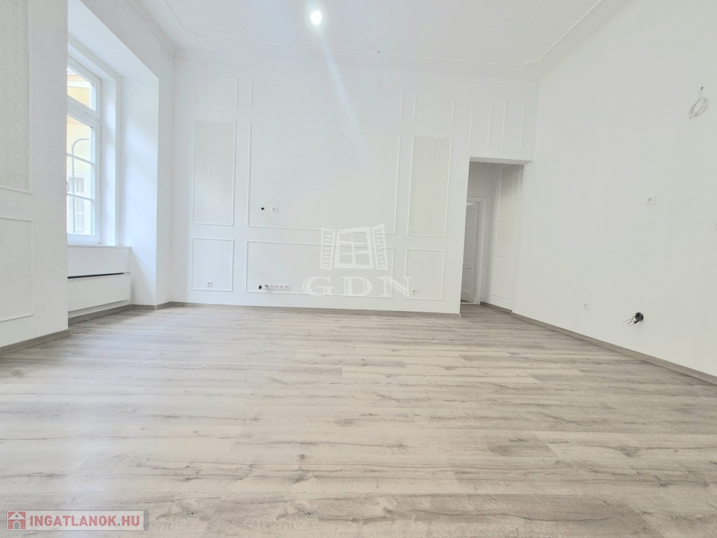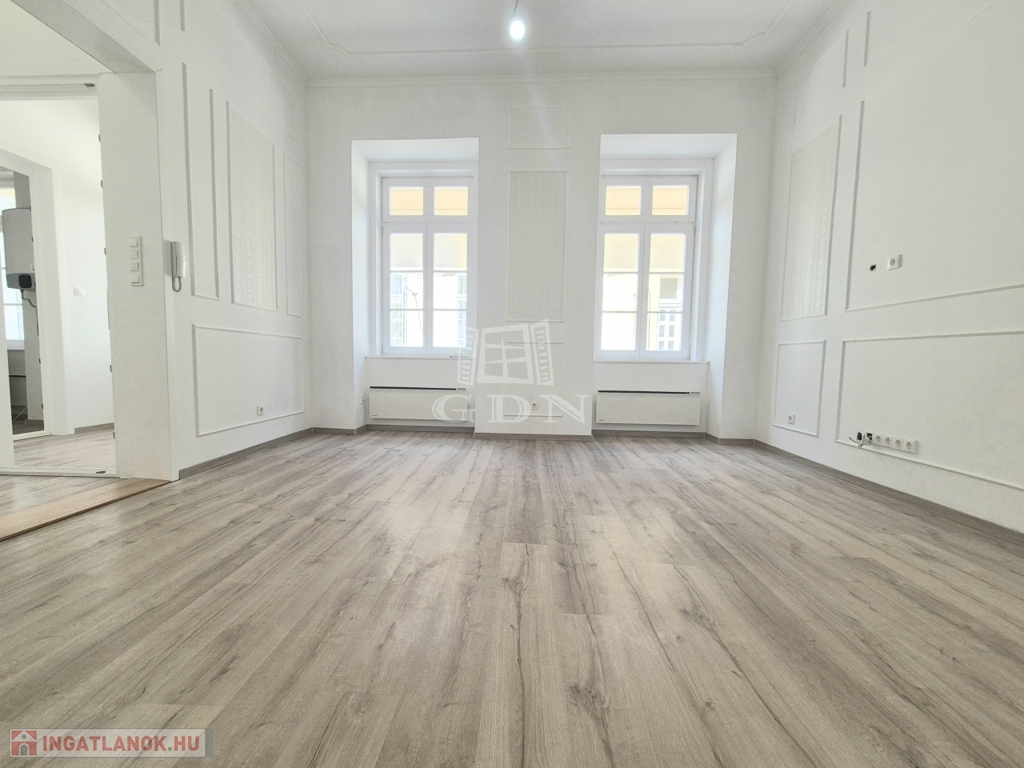 Eladásra kínálunk egy 90 m²-es, teljes körűen felújított lakást Budapest belvárosában, az V. kerület egyik igényes, folyamatosan karbantartott, liftes társasházának harmadik emeletén.