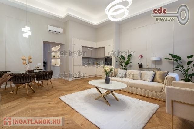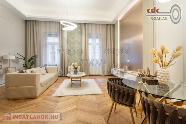 ***ÁLOMOTTHON LUXUSKIVITELBEN, ahol az ELEGANCIA és a KOMFORT találkozik, PRÉMIUM kivitelezés a BELVÁROS SZÍVÉBEN!*** V. kerületben, a Szemere utcában, a Parlament közelségében, nagypolgári, rendezett, dupla LIFTES társasházban, 3. emeleti, 3 szobás, teljeskörűen és prémium minőségben felújított, CSENDES, NAPFÉNYES, tágas terekkel rendelkező, 86 m2-es, amerikai konyhás nappalival + 2 külön nyíló hálószobás lakás eladó. A hálószobákhoz külön fürdőszoba, valamint 1 gardróbszoba tartozik. A lakás teljes körűen és prémium minőségben felújított, lakberendezői tervek alapján, magas színvonalon kiviteletett és berendezett. A ház eredeti nyílászáróival megegyező hő- és hangszigetelt új nyílászárok kerültek beépítésre elektromos redőnnyel. Az új, minőségi beltéri ajtók és a márványos padló elegáns összhatást kölcsönöz. A teljes víz- és villanyvezeték hálózat megújult. A nappaliban és hálókban az egyedi csillárok mellett LED világítás is helyet kapott az állmennyezetben különlegessé téve a lakás hangulatát. A nappali exkluzív hangulatát fokozza a 4 méter feletti belmagasság, a monumentális médiafal és a Chevron tölgyfa parketta. A fűtésről és a melegvízről Bosch kondenzációs kazán gondoskodik. A nyári meleg enyhítését hatékony Daikin klímaberendezések biztosítják, melyek az átmeneti időszakokban fűtési lehetőséget is nyújtanak. A konyha magas minőségű, AEG konyhagépekkel felszerelt. A társasház a környék gyöngyszeme, mely a század elején épült, igényesen rendben tartott, pénzügyileg is rendezett és folyamatosan karbantartott. Az épület teljes homlokzata gyönyörűen felújított, 2 vadonatúj nagyméretű OTIS lifttel ellátott. A környék infrastruktúrája páratlan, központi elhelyezkedése, a Duna part, a Parlament, a pezsgő belváros és az üzleti negyed közelsége kiemelten vonzó a helyi lakosok, mind pedig a külföldiek számára! Itt valóban minden készen áll arra, hogy a környezetére igényes új lakó az álmaiban szereplő otthonára leljen a belvárosban. Nem kell felújítással bajlódni, csak élvezni a lakás által nyújtott előnyöket. Ha befektetésben gondolkodik, megtalálta a tökéletes ingatlant, amely könnyen kiadható és magas megtérülést biztosít. A lakás AZONNAL BIRTOKBA VEHETŐ! A teljes berendezés az ár részét képezi!