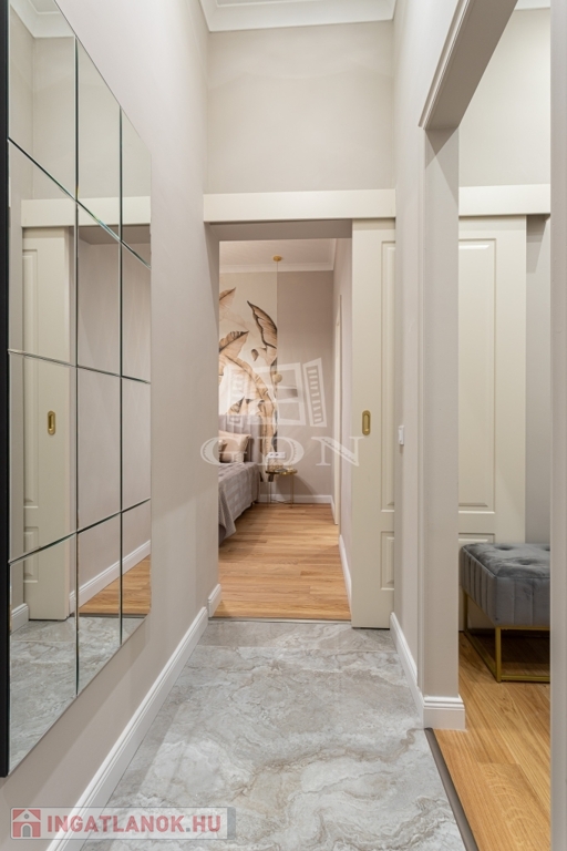 A lakás egy díszes, nagypolgári, dupla liftes társasház 3. emeletén található, ahol a klasszikus elegancia tökéletesen találkozik a modern kényelemmel.