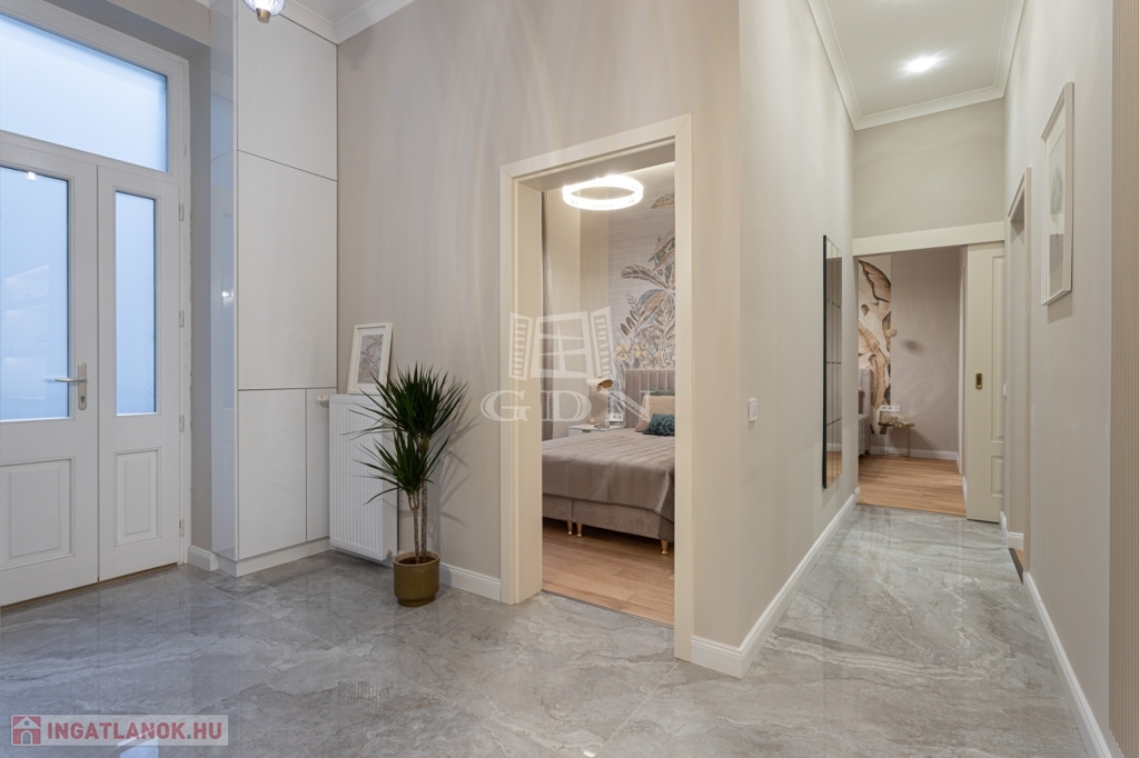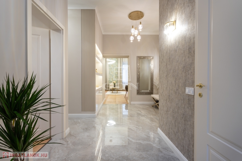 For sale: a beautifully redesigned 86 sqm luxury apartment located in one of the most prestigious areas of District V, Szemere Street, just steps away from the Parliament and the Danube River.