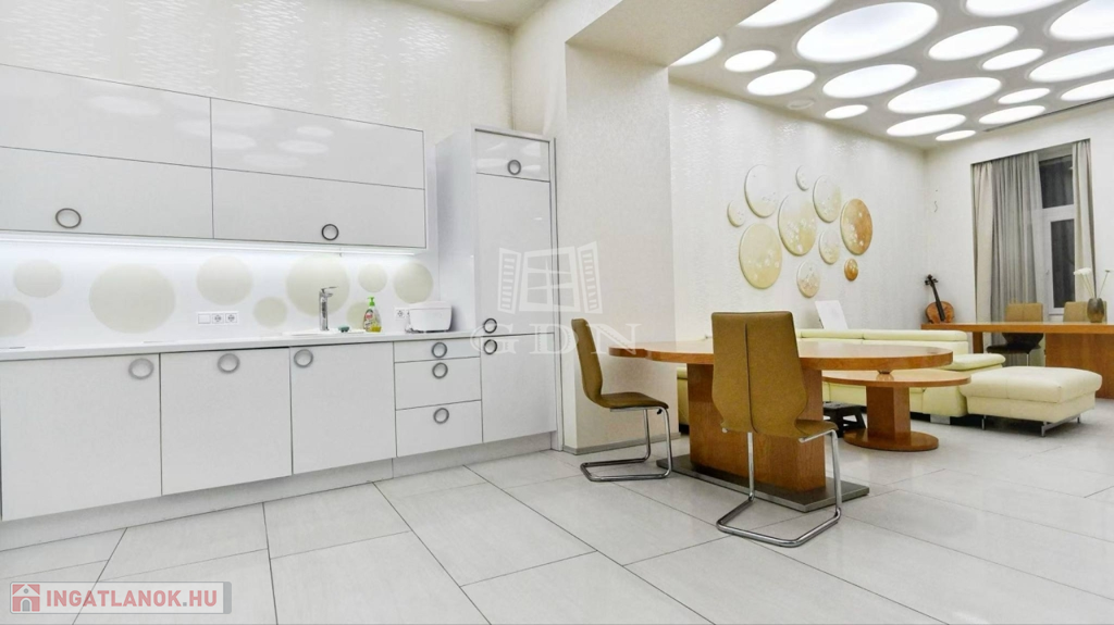 Az V. kerület szívében, az Astoria és a Ferenciek tere között, a Kossuth Lajos utcában, impozáns, liftes társasház 3. emeletén kínálok eladásra, egy minden igényt kielégítő, luxus kivitelezésű, amerikai konyhás-nappalis + 3 különnyíló szobás, dupla komfortos, magas műszaki tartalommal rendelkező, klimatizált téglalakást.
