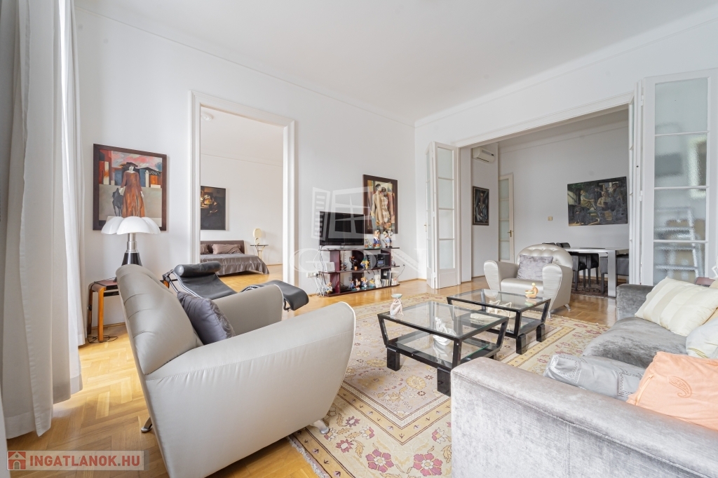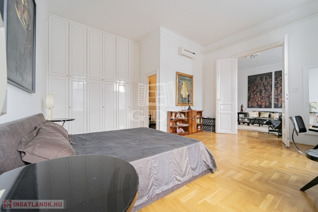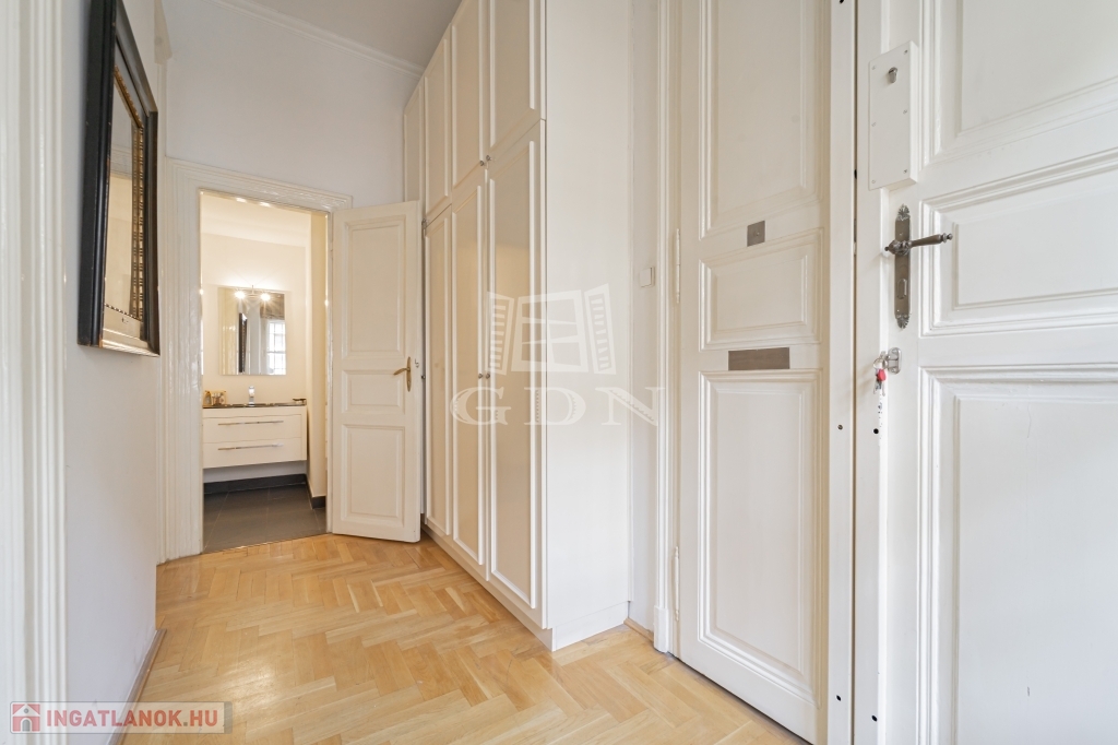 Most megvásárolhat egy darabot a világörökség részéből, és minden reggel az erkélyéről gyönyörködhet a csodás kilátásban. A lakás zárt lépcsőházból megközelíthető. Remek elrendezésnek köszönhetően két hálószobának nincs közös fala, jelenleg is két fürdőszobával rendelkezik. A konyha mellett a hallban került kialakításra az étkező mely egy négy szárnyú ajtó választ el a nappalitól. Négy ablaka néz a Dunára, három pedig a belső frontra. A lakás klimatizált, a kültéri egységek a társasház jóváhagyásával kerültek elhelyezésre. A lakószobákban eredeti, felújított fa parketta található. Ha felújítana, átalakítana ez az ingatlan remek alapot biztosíthat egy három háló szobás lakás kialakítására.