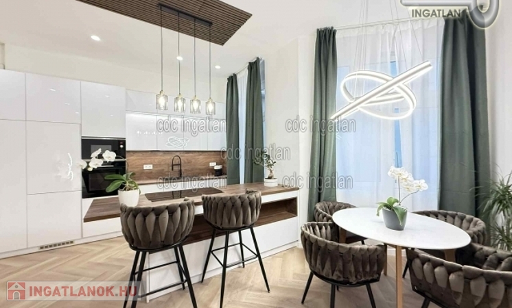 Eladó Budapest szívében egy exkluzív luxuslakás! Megvételre kínálunk a Belváros egyik legpatinásabb utcájában, az V. kerületi Papnövelde utcában egy teljes körűen, prémium minőségben felújított, 91 m²-es, 3 szobás, napfényes lakást. Az ingatlan III. emeleti, nagyon világos és csendes, amerikai konyhás nappali, tágas és elegáns tér + 2 külön nyíló szoba, gardróbszoba, 2 külön fürdőszoba a maximális kényelemért. Cirkófűtés, padlófűtés, komfort minden évszakban, elektromos redőny és szúnyogháló minden ablakon. A teljes körű felújítás során belsőépítész által megálmodott, egyedi enteriőr, prémium minőségű anyaghasználat, igényes kivitelezés. Rendezett, liftes társasház, kulturált lakóközösséggel. Üveg érintős kapcsolók, okosotthonnal felszerelt wifin keresztül irányítható fények, a szobákban Polár hűtő-fűtő wifi-s klíma, Mosókonyha gépesített: Bosch mosógép és szárító, asztalos által készített minőségi egyedi beépített szekrények és konyhabútor, Bosch hűtő, mosogatógép, sütő és mikró, Klarstein főzőlap és szagelszívó. Minőségi szaniterek, UV és hő ellen felfóliázott, 3 rétegű ablakok, amelyek privát szférát biztosítanak a tükör hatásnak köszönhetően. A lakás ideális választás mindazoknak, akik nem szeretnének kompromisszumot kötni: elegancia, modern kényelem és nagypolgári enteriőr, belvárosi életstílus egy helyen. Irányár: 269.000.000 Ft. Ez a lakás nem csupán otthon, hanem életstílus is! Ne hagyja ki ezt a ritka lehetőség egy ilyen színvonalú ingatlanra Budapest történelmi belvárosában!