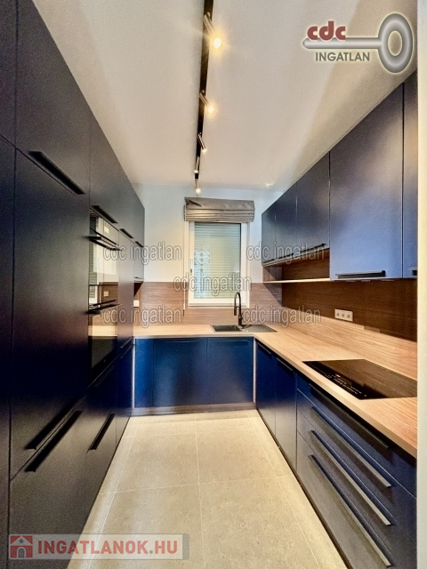 Eladó egy prémium minőségű, teljesen újjáépített, örökpanorámás luxus lakás az V. kerületének szívében, Lipótváros egyik patinás, art deco stílusjegyeket is őrző, század eleji, liftes társasházában. Az előszobából nyílik egy kisebb dolgozó vagy vendégszoba, majd az egyedi, sötétkék színű, teljesen gépesített konyhába jutunk, amely a nappalival egy légtérben található. Az étkező természetesen elválasztja a konyhát a tágas, napfényben úszó nappalitól. Az előszoba része egy háztartási/gépészeti helyiség, valamint egy különálló WC is. A nappaliból igényes tolóajtón keresztül érhető el a nagy méretű hálószoba, amelyhez saját gardrób és kádas fürdőszoba tartozik. Helyiségenként szabályozható, 4 zónás padlófűtés és mennyezethűtés, 8 kW-os Midea levegő-víz hőszivattyúval. Prémium minőségű burkolatok (olasz csempe stb.). Hőszivattyús használati melegvíz-ellátás 160 literes indirekt tárolóval. Teljesen gépesített konyha AEG készülékekkel és gránit mosogatótálcával. Okostelefonról vezérelhető, mindenhol elérhető LED világítás. Többrétegű, hang- és hőszigetelt alumínium-fa nyílászárók motoros redőnnyel. A lakás páratlan kilátást kínál a Dunára, az Olimpia Parkra, a Parlamenttől egészen a Margit hídig. A szemben álló fák esztétikai látványt nyújtanak anélkül, hogy zavarnák a kilátást, amely a lakás szinte minden helyiségéből élvezhető. Az erkélyről a Budai oldal lenyűgöző látványa is elénk tárul.