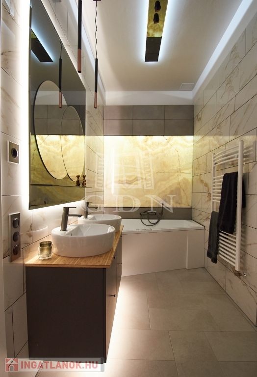 Az ingatlan igényesen berendezve, új bútorokkal, garanciális gépekkel, extrákkal (hangszigetelés, házimozi, projektor, vetítővászon, eredeti onyx bárpult, egyedi fénytechnika, automata redőnyök) felszerelve várja új tulajdonosát.