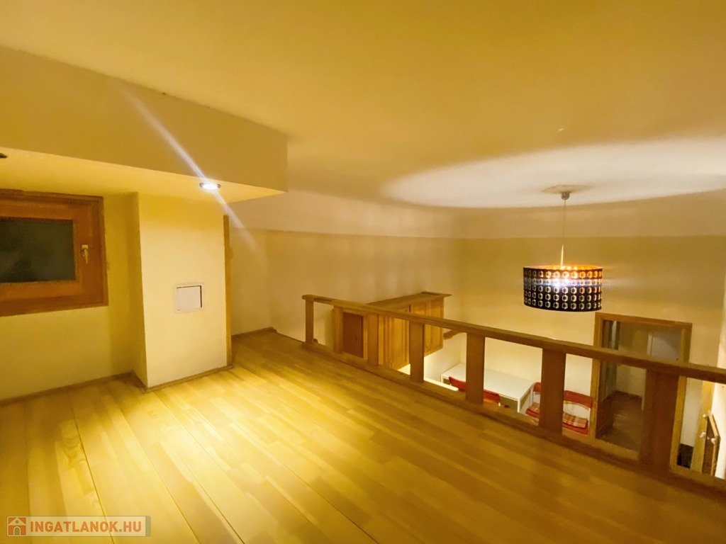 a bejáratnál egy barátságos nappali-konyha található, galériával, amely alkalmas tárolásra vagy akár egy plusz hálórész kialakítására is,
