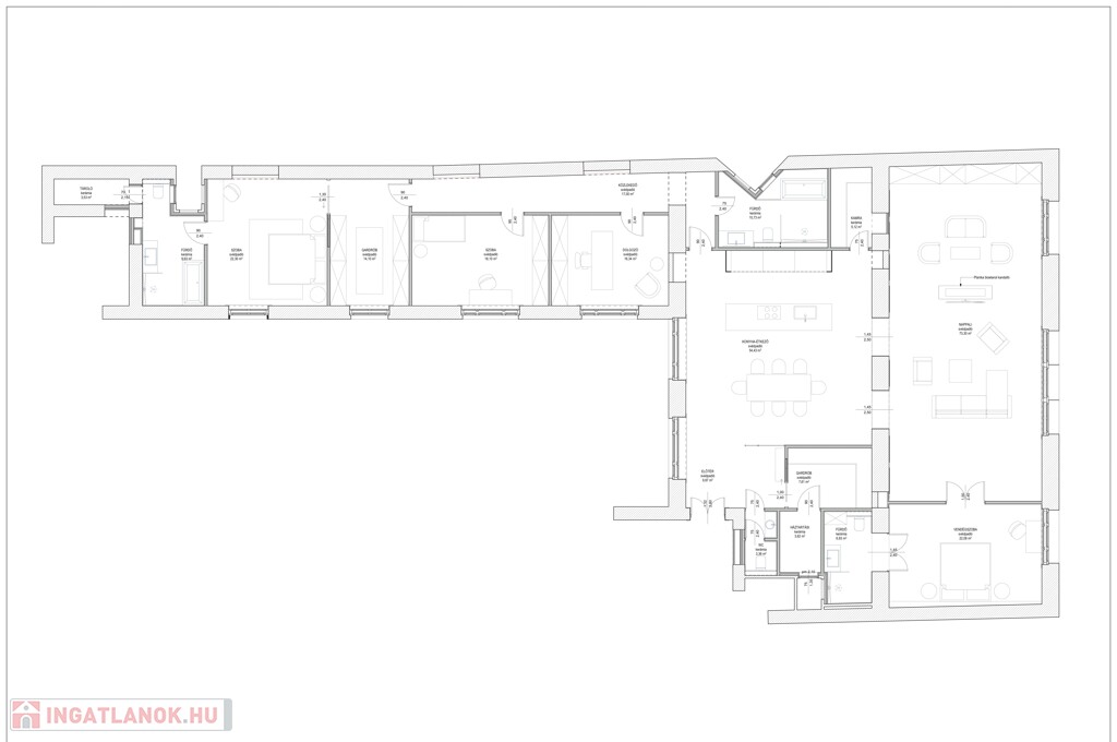 Art deco stílust követő, igényes lakásfelújítás. Nappali, dolgozó + étkező konyha beépített gépekkel + 2 gardróbszoba + 4 hálószoba + 3 fürdőszoba. 3 rétegű ablakok elektromos redőnyökkel.