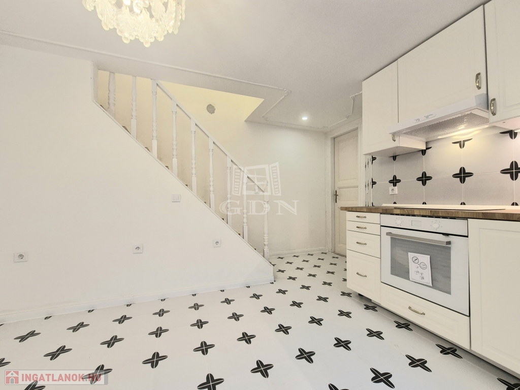 V. kerületben, a Károlyi-kert közelében, jó állapotú, liftes társasház földszintjén, eladásra kínálok, egy udvari nézetű, a tulajdoni lapon 45 m2-es (a valóságban 90 m2) belső kétszintes, 3 szobás, dupla komfortos, műszakilag-esztétikailag felújított ( víz, villany vezetékek cseréjén átesett, műanyag nyílászárókkal, gépesített konyhabútorral szerelt) alacsony fenntartású téglalakást.