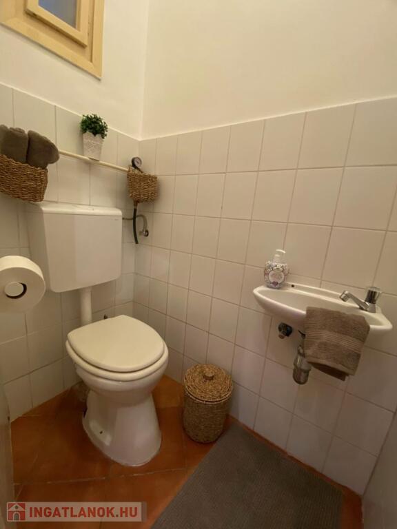 A fürdőszoba zuhanyzós, a meleg vizet gázvízmelegítő szolgáltatja, a WC pedig külön helyiségben van, ablakos.