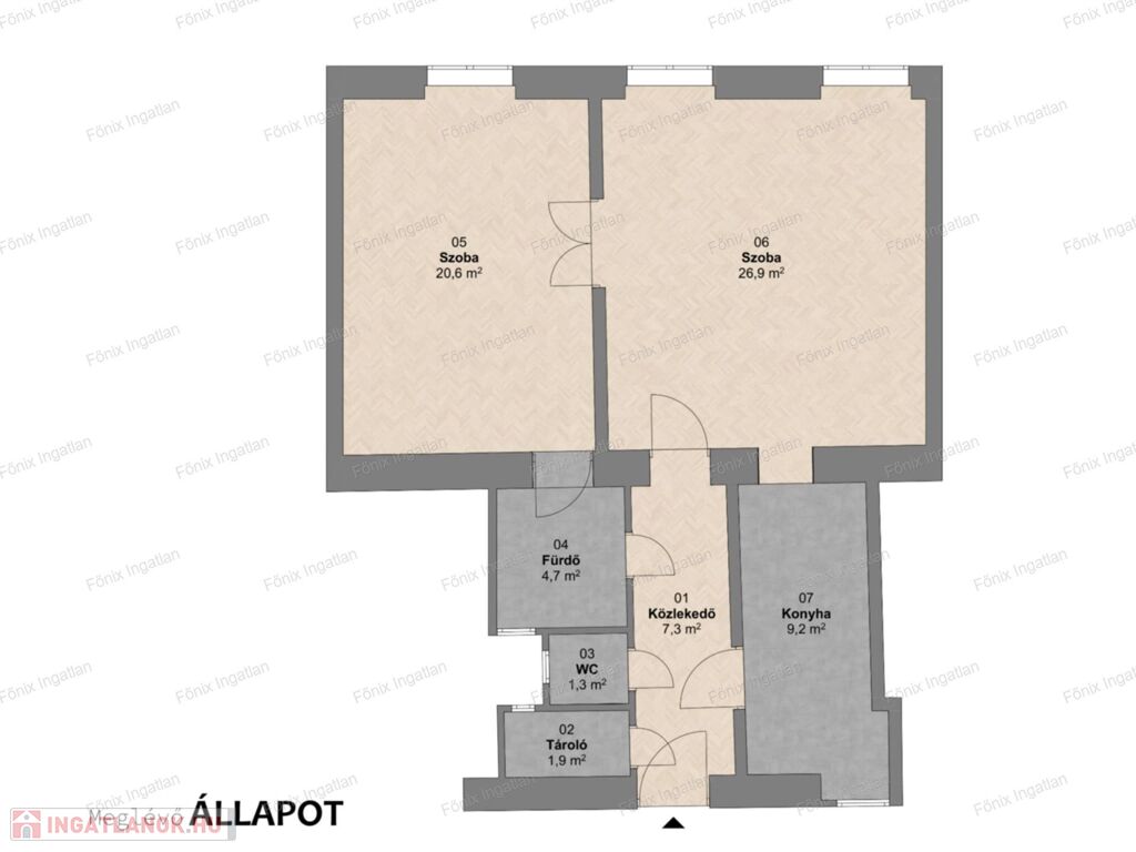 - jelenleg 2 szobás, de kis ráfordítással 3 szobássá alakítható