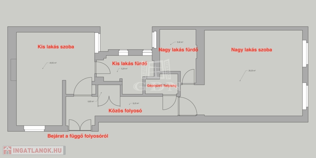 Az ingatlan jelenleg két lakrészre van osztva, amennyiben a vevő igényli a tulajdonos nappali + 2 hálószobás lakássá alakítja.