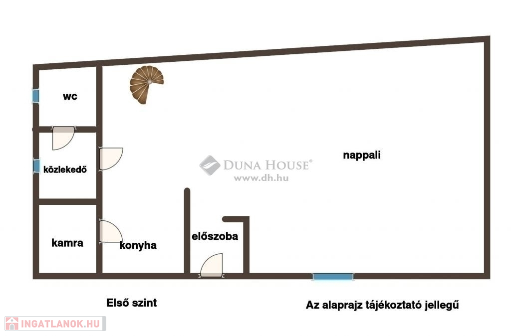 Az alapterület a két szinten 78 nm. Az alsószinten, előszoba, konyha, spájz, mosdó, külön wc és egy nappali található. A tetőtérben napfényes 2 db hálószoba és egy fürdő wc-vel és egy külön wc helyezkedik el. Az egyik hálószobából egy közel 10 nm-es terasz is emeli az ingatlan komfortját. Mindkét szint fűtésről gáz-cirkó gondoskodik.