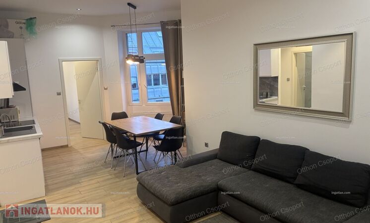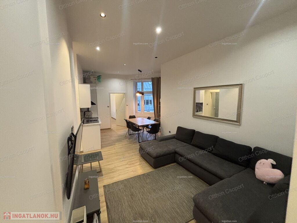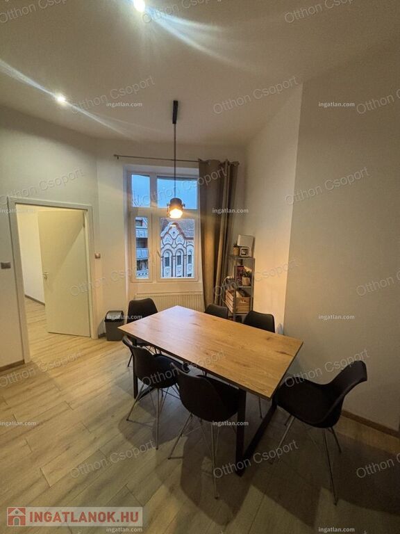 Eladó VI. kerület Csengery utcában egy 4. emeleti frissen felújitott, modern design lakás. Hivatalosan 99 m2, de valójában 10 m2-rel nagyobb. A jelenlegi formáját 6 éve nyerte el, amikor a válaszfalak átépitésével egy 4 hálószoba plusz amerikai konyhás ( beépitett túzhely, sutő és mosgatógép)nappalivá lett átépítve, melyben 3 fördőszoba és 2 WC is helyet kapott. A lakás jelenleg bútorozott, de igény esetén üresen is megvehető. A lakáshoz tartozik 2 francia erkély is. A konyha teljesen felszerelt gépekkel beleértve mosgatógépet is. A hálószobákből 2 saját fürdöszobával rendelkezik, melyek mozgatható falakkal vannak a vizes helységektől elválasztva. A fútést és melegvizellátást kondenzációs kazán biztosítja. A padlót laminált parketta borítja. A lakás pár év használat után most esett át egy felújjitáson.