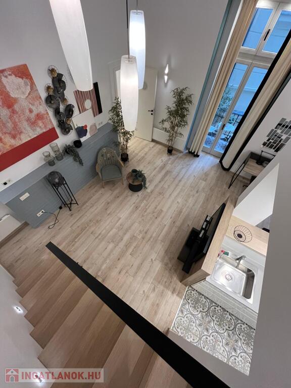 A lakás teljes körűen, lakberendező közreműködésével került kialakításra, prémium minőségben. A nagy belmagasság lehetővé tette egy kényelmes hálógaléria kialakítását.