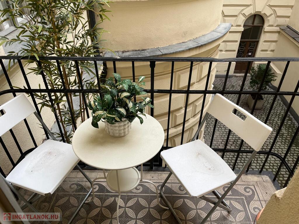 Az 1. emeleti, 41 m²-es lakás praktikus elrendezésű, amelyhez 8 m²-es galéria és egy 2 m²-es terasz is tartozik. Az ablakok és a terasz a gondosan megújított belső udvarra néznek, így a belvárosi elhelyezkedés ellenére csendes, nyugodt életteret biztosítanak.