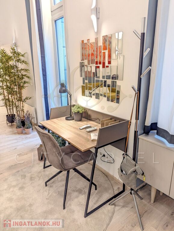 A 41 nm-es (plusz 8 nm galéria és 2 nm terasz) 1. emeleti lakás a belső udvarra néz, így rendkívül csendes, mégis néhány lépésre van a város lüktetésétől.