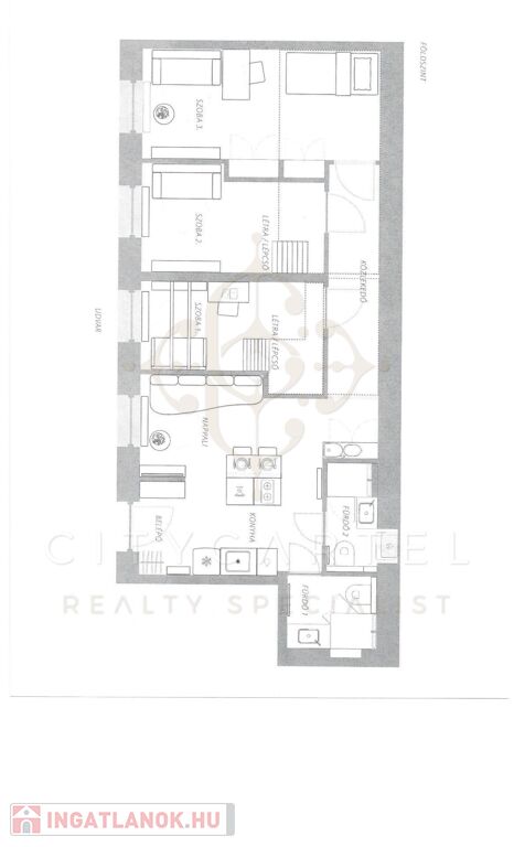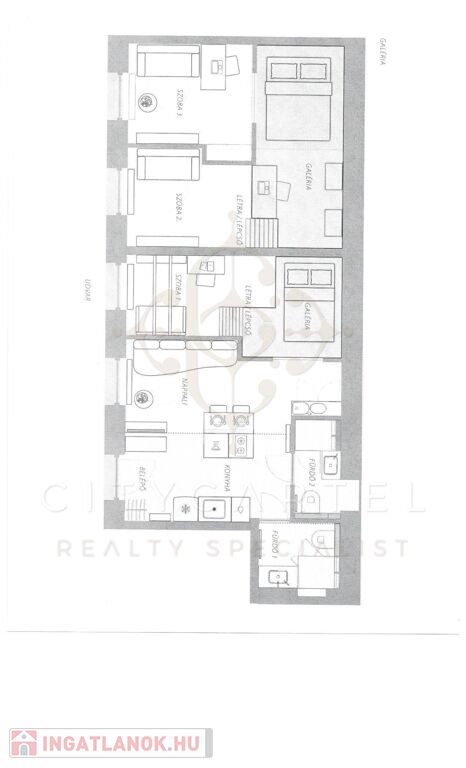 A tulajdoni lapon 71 nm-es lakás a nagy belmagasságnak köszönhetően galériákkal lett kiegészítve, így az alapterület minden négyzetmétere hasznosan kihasznált.