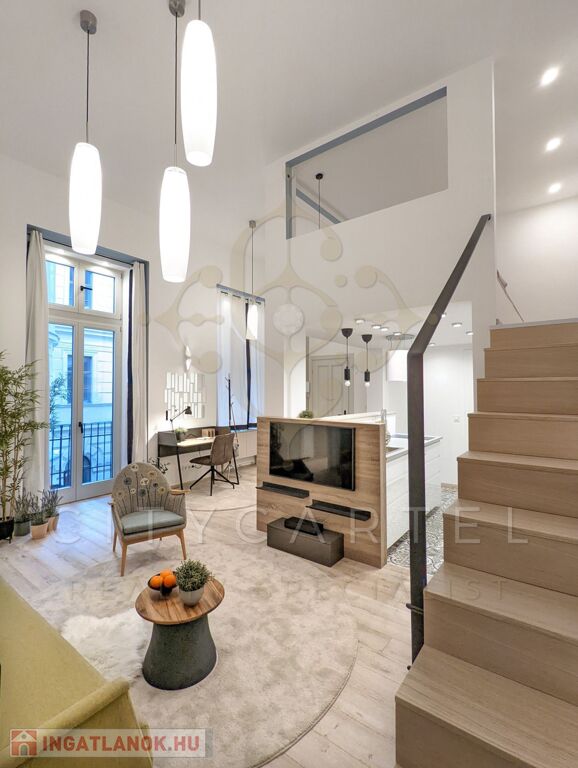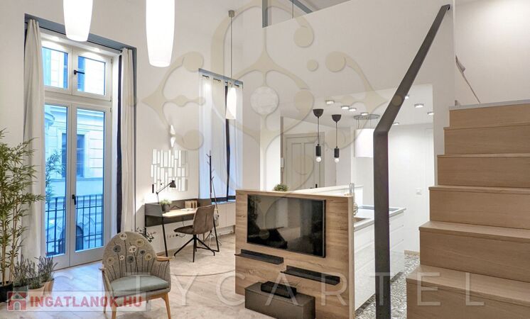A 41 nm-es (plusz 8 nm galéria és 2 nm terasz) 1. emeleti lakás a belső udvarra néz, így rendkívül csendes, mégis néhány lépésre van a város lüktetésétől.