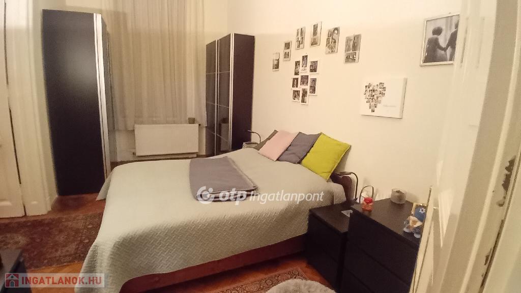 A lakásban három nagy szobából kettő az ucára, egy az udvarra néz. A fürdőszobája is méretes, kád és tusoló is található benne. A WC külön bejáratú. Jól felszerelt konyhája egyben van az étkezővel. A konyhából egy nagy kamra nyílik, amiből még egy kis spejzba jutunk. A fűtést gáz-cirkó kazán biztosítja. Négyméteres belmagassága miatt kiválóan galériázható.