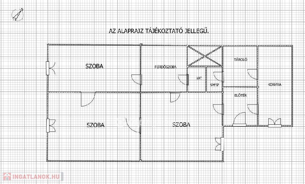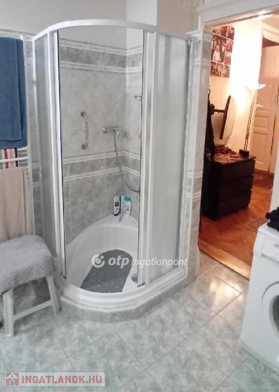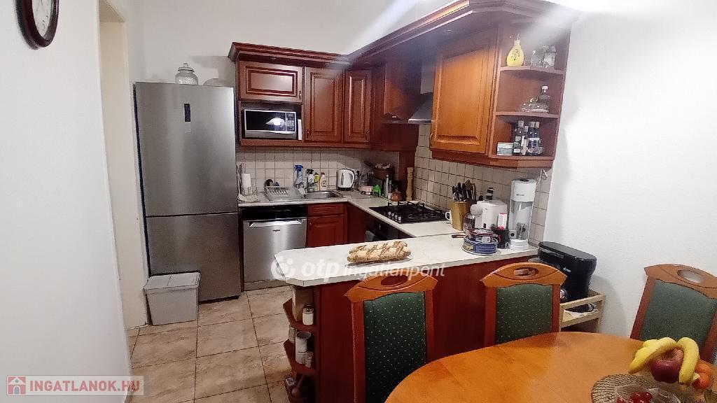 A lakásban három nagy szobából kettő az ucára, egy az udvarra néz. A fürdőszobája is méretes, kád és tusoló is található benne. A WC külön bejáratú. Jól felszerelt konyhája egyben van az étkezővel. A konyhából egy nagy kamra nyílik, amiből még egy kis spejzba jutunk. A fűtést gáz-cirkó kazán biztosítja. Négyméteres belmagassága miatt kiválóan galériázható.