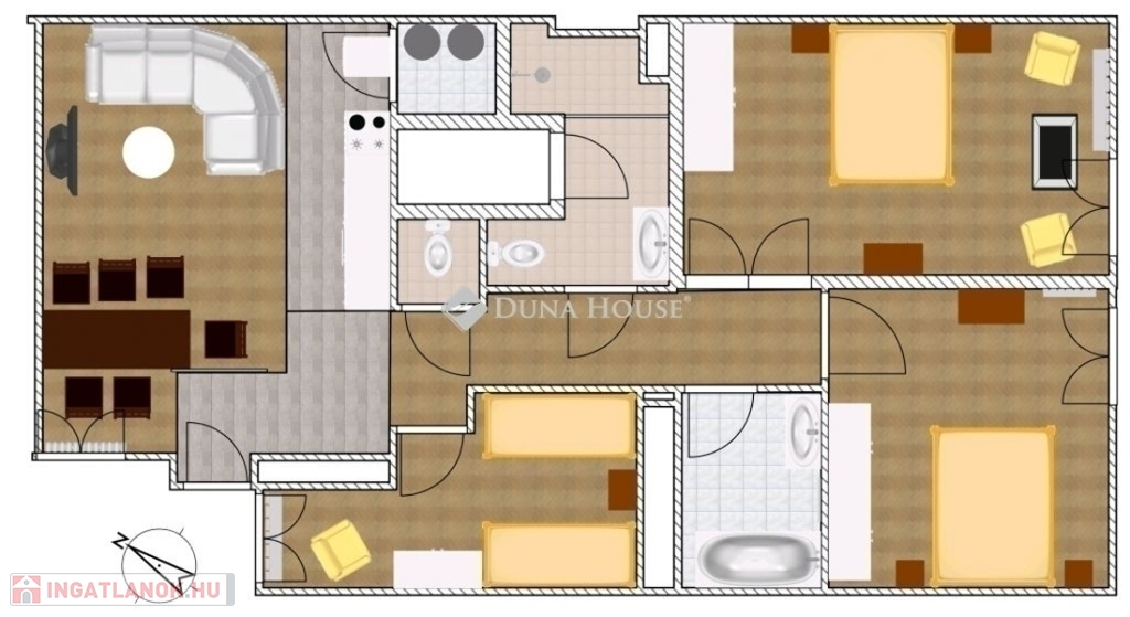 A kondenzációs kazánnal működő fűtés helyiségenként szabályozható, biztosítva az optimális hőmérsékletet és melegvíz-ellátást. A nappali és mindhárom hálószoba légkondicionált, így a lakás minden évszakban kellemes klímát kínál.