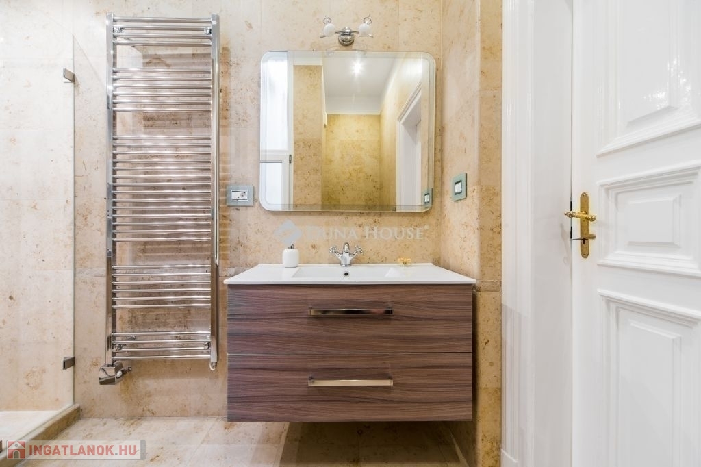 Budapest szívében, a Szent István Bazilika közvetlen közelében kínálunk megvételre egy tágas, 3 hálószobás, teljesen felújított lakást. Az ingatlan egy amerikai konyhás nappalival, két fürdőszobával és egy külön WC-vel rendelkezik. Az egyik fürdőszobában kád, míg a másikban egy nagy méretű, épített mészkő zuhanyzó található a kényelem és a stílus jegyében.