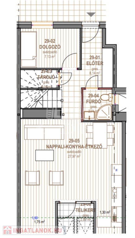Az apartmanban a konyha és a nappali együtt alkot egy egységet.