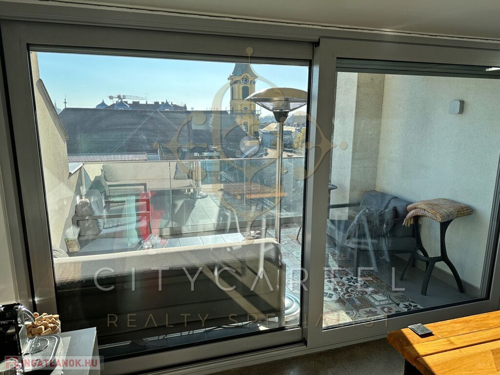 Az ingatlan egyik legkülönlegesebb eleme a hatalmas alumínium nyílászárókon keresztül feltáruló örök panoráma, amely kivételes térérzetet és természetes fényt biztosít. A lakáshoz tartozó 12 nm-es terasz, valamint a tetőterasz valódi városi luxust kínál – tökéletes helyszín pihenéshez, vendégfogadáshoz vagy akár privát rooftop élményekhez.