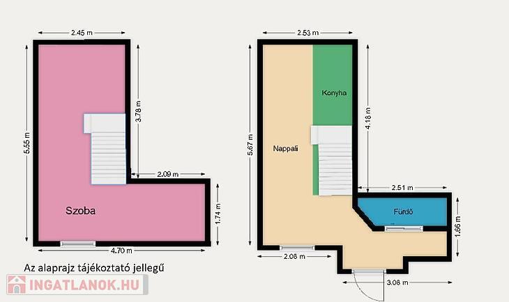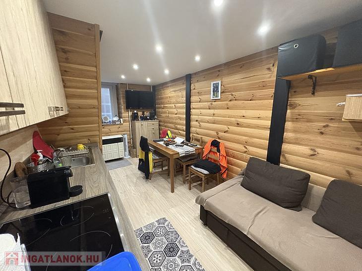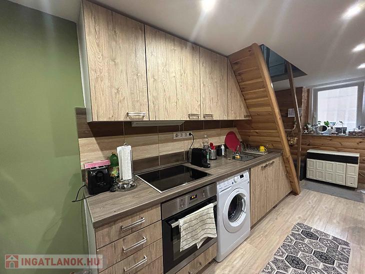 Az ingatlan 19 m² alapterületű, amelyet egy 17 m²-es, teljes belmagasságú állógaléria egészít ki – így a hasznos tér kényelmesen megnövekszik. A lakás okosan kialakított: a galérián tágas hálórész, a földszinten pedig nappali, konyha és zuhanyzós fürdőszoba található.