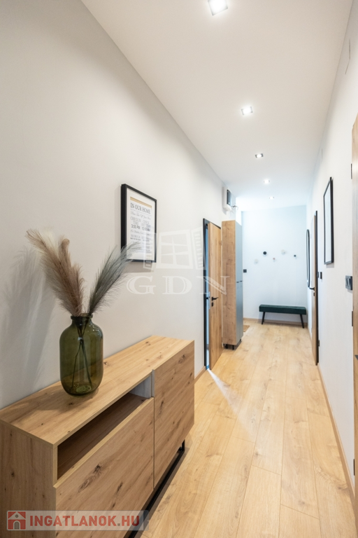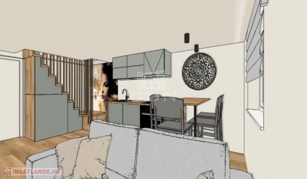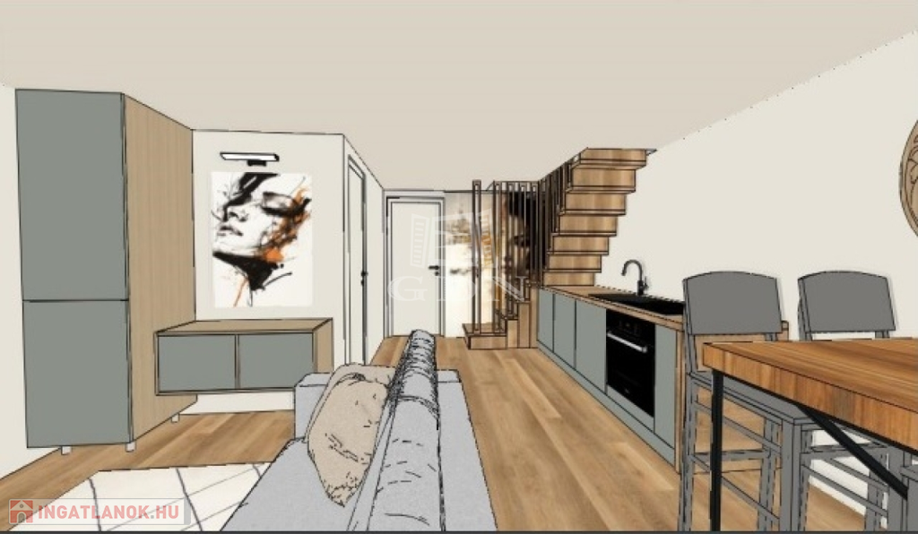 Eladó egy luxus kivitelezésű, 28m2-es belső kétszintes ingatlan (fsz. belmagassága: 210cm, emeleten: 192cm), mely modern megoldásokkal felszerelt, mint az elektromos padlófűtés és hűtő-fűtő klímák.