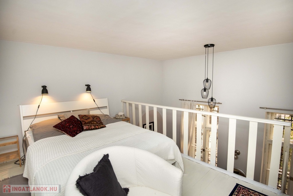 A lakás belmagassága 4,6 méter, mely különleges tágasságérzetet ad, amitől a lakás igazán elegáns és levegős. A nagy belmagasságnak köszönhetően sikerült egy 11 nm-es állógalériat kialakítani, ahol kényelmesen elfér egy franciágy és egy szekrény.