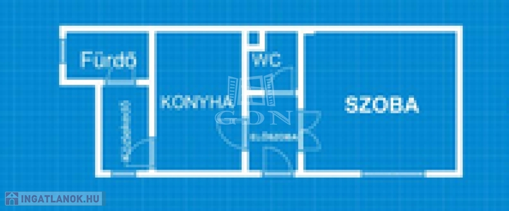 A lakás egy szoba, konyha, kádas fürdőszoba , külön WC és kamra elrendezésű.