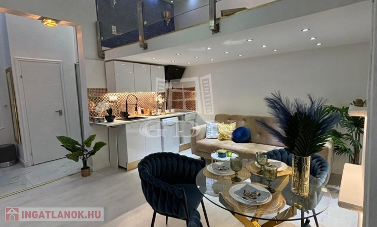 A VI. kerület frekventált részén, a Vörösmarty utcában eladó egy 31 m²-es, két galériával rendelkező, hangulatos stúdió lakás. A kivételes, 3,8 méteres belmagasság lehetővé tette két, összesen 14 m²-es, 1,6 méter belmagasságú galéria kialakítását, amelyek praktikus pluszteret biztosítanak és a lakás minden négyzetméterét maximálisan kihasználttá teszik. A lakáshoz saját, kialakított teraszrész is tartozik.