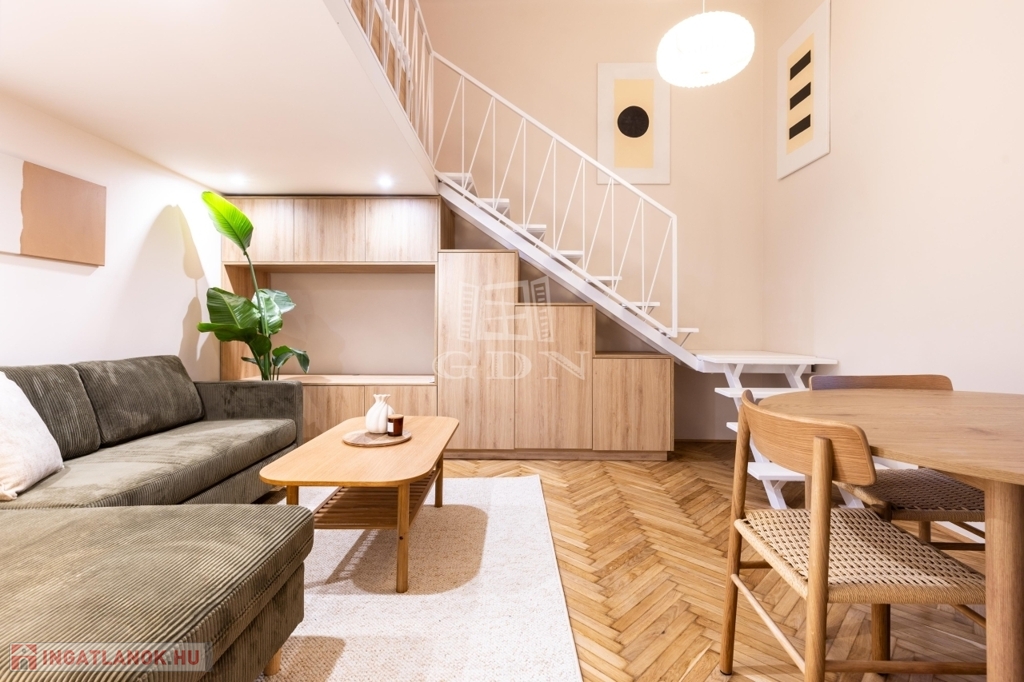 Budapest szívében, a VI. kerület egyik legkellemesebb, hangulatos utcájában várja új tulajdonosát ez a 22 m²-es, galériás (6,25 m2) kis lakás, amelyet lakberendező tervei alapján, teljes körűen felújítottak. A munkát profi kivitelező csapat végezte, akik nagy figyelmet fordítottak arra, hogy minden centiméter praktikus és harmonikus legyen.