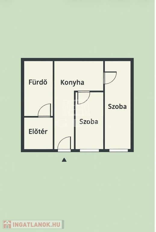 előszoba, hall, melyből két szoba nyílik, étkező, konyha, fürdőszoba