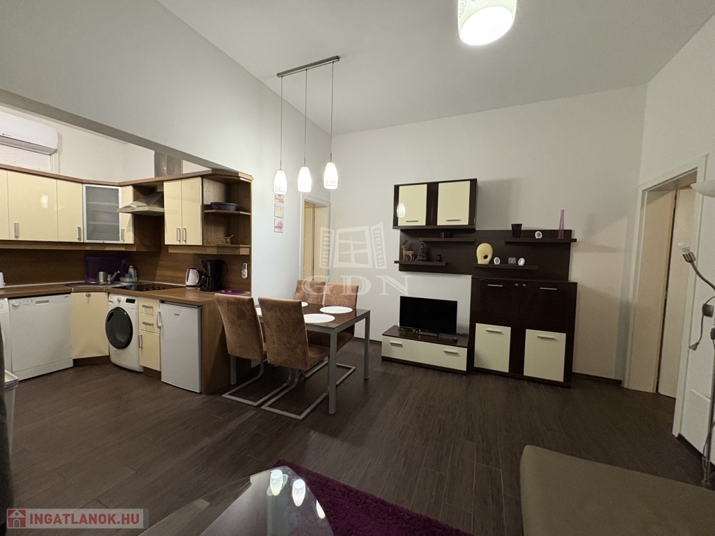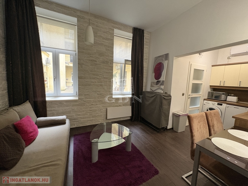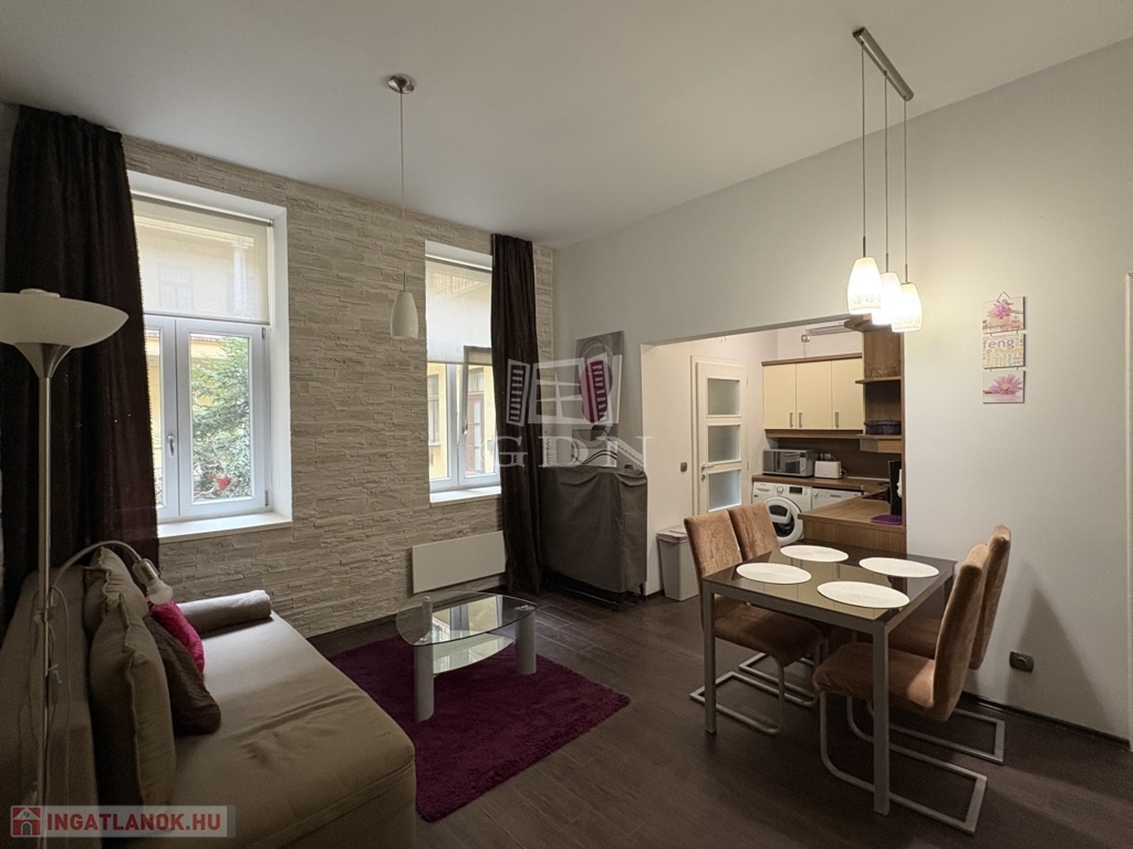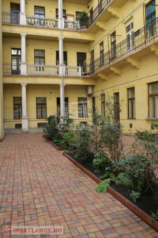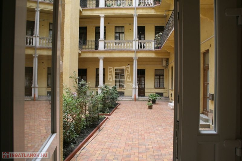 A lakás egy szép állapotú társasházban található, belső udvarra néző ablakokkal, így a belvárosi elhelyezkedés ellenére csendes, nyugodt környezetet kínál.