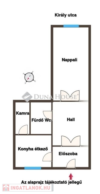 Király utcában 54 nm es 1 szoba + hall, 2. emeleti lakás eladó.