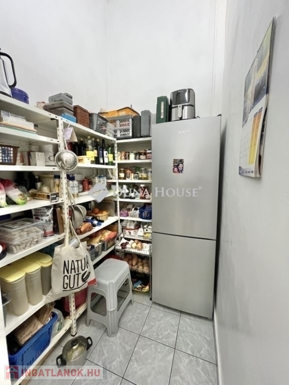A lakásban nagyméretű konyha van étkezővel és kamrával.