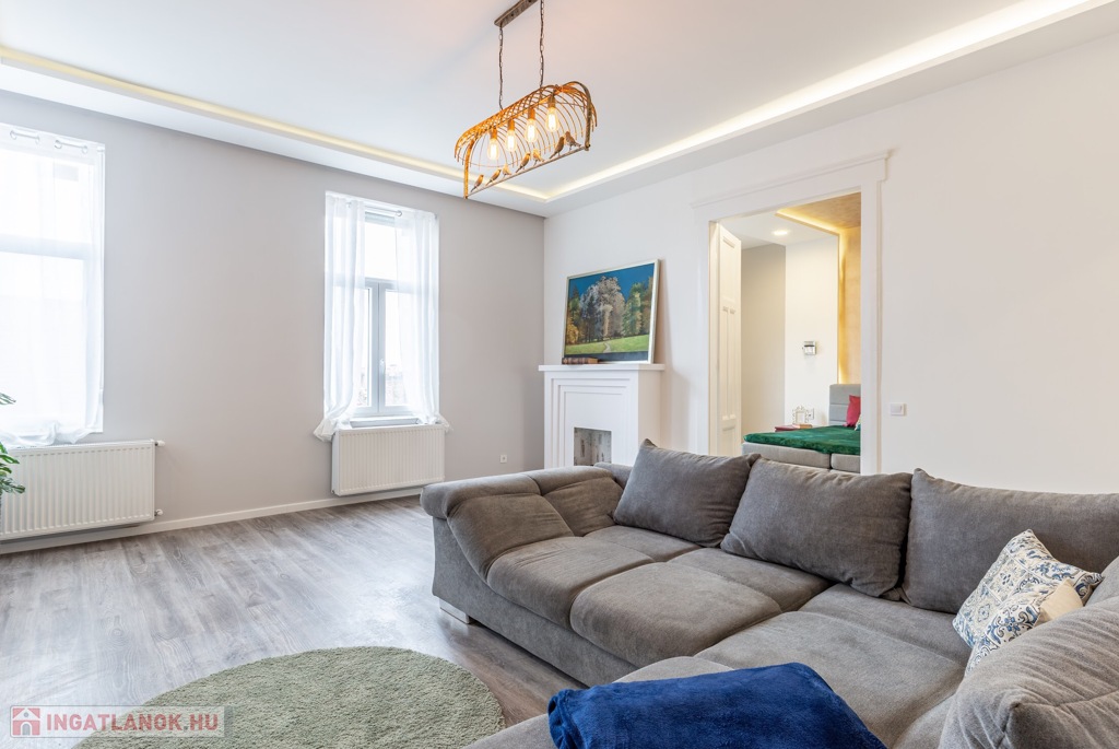 Prémium módon, lakberendező tervei alapján felújított lakás, gépesített konyhával, bútorokkal. A lakás nagy nappalival, egy nagyobb és egy kisebb hálószobával rendelkezik, de könnyen kialakítható még egy szoba, amennyiben két gyerekkel költöznél. Az irányár tartalmazza a beépített gépeket és bútorokat, illetve további bútorok jelentős részét.