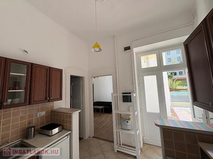 A lakás udvari fekvésű, ennek köszönhetően csendes, a belső légudvarból pedig egy saját kis terasz is elérhető, amely nyugodt pihenőhelyet kínál a város nyüzsgésétől távol. A földszinti elhelyezkedés miatt könnyen megközelíthető, ugyanakkor megőrzi a belső udvar nyugalmát.