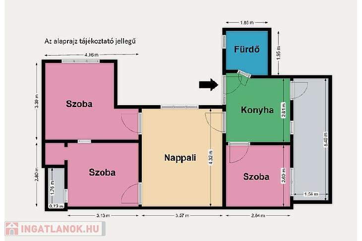 Méret: 57 négyzetméter