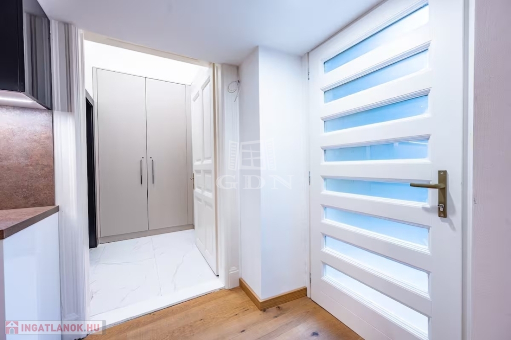 A lakás teljes körű felújításon esett át, ahol a klasszikus és a modern stílus tökéletes egyensúlyban találkozik: