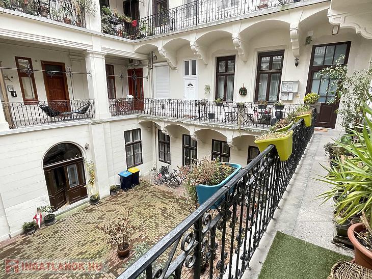 A 61 m²-es, két szobás plusz galériás lakás a történelmi hangulatú épületben található, amely nevét egykori tulajdonosáról, Ellinger Gusztávról - hegedűművészről és pedagógusról - kapta, aki az 1890-es években birtokolta a ház egyik részét. A palota ma is a környék egyik különleges, történeti hangulatú épülete, és a társasház két éve esett át felújításon, így rendezett, jó állapotú környezetben várja új tulajdonosát.