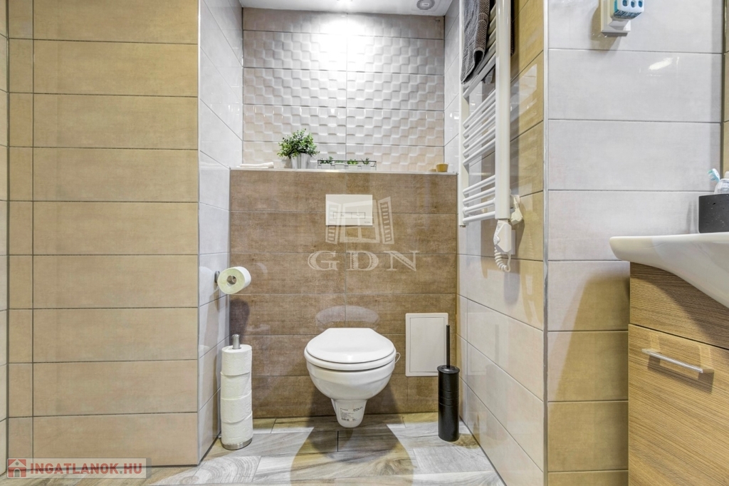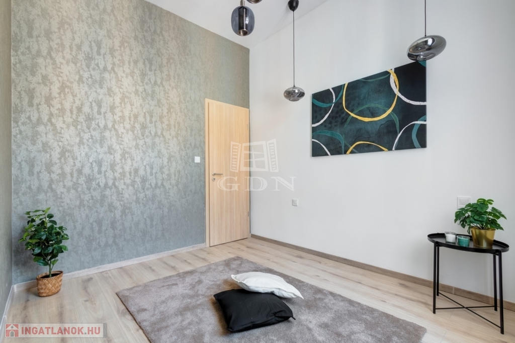 Az ingatlan elrendezése kiváló: amerikai konyhás nappali, két hálószoba, valamint fürdőszoba wc-vel. A lakás teljes körű felújításon esik át, jelenlegi készültsége kb. 70%, a befejezés várhatóan 60 napon belül történik meg.