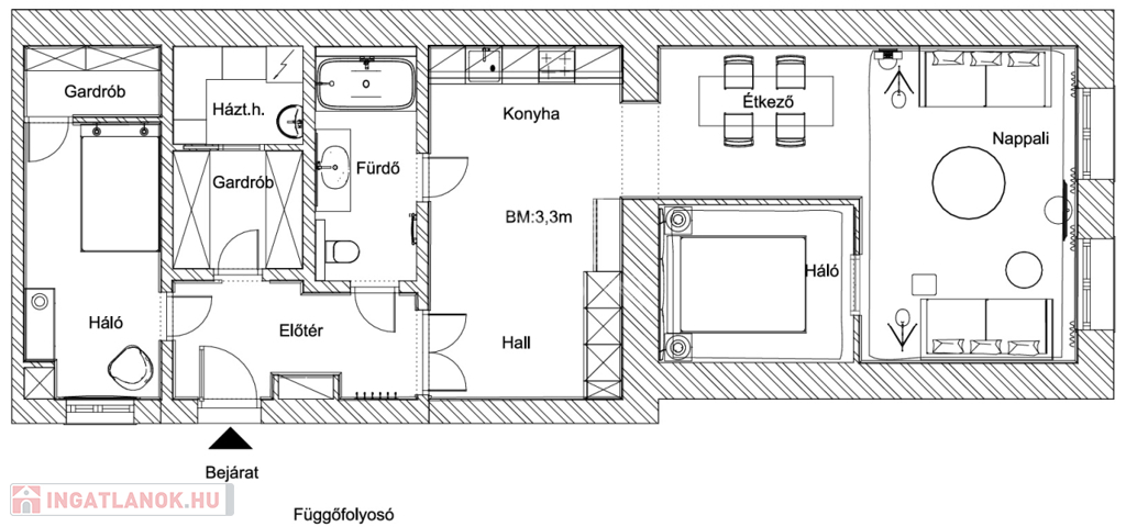 Két különálló lakrészre is átalakítható (kb. 30 nm + 57 nm) – ideális befektetőknek, vagy két generációnak!