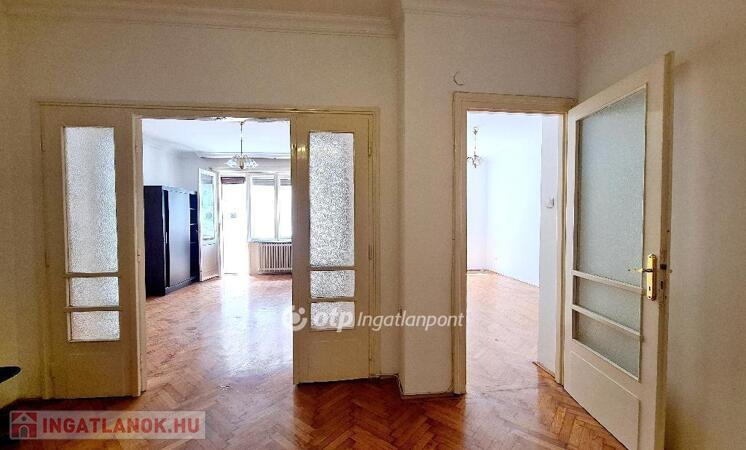 Eladó egy tágas, 92 nm-es, 2. emeleti lakás Belső-Erzsébetvárosban a Dob utcában. A bejárat előtt egy csendes kávézó helyezkedik el.