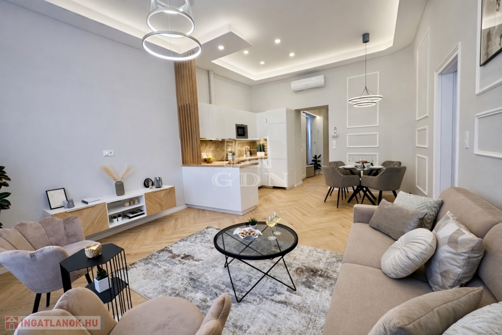Budapest pezsgő központjában, a Dohány utca egyik legkeresettebb részén kínálunk megvételre egy 70 m²-es, prémium minőségben felújított lakást, pár lépésre a Blaha Lujza tér forgatagától.
