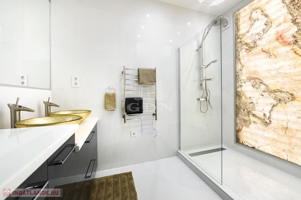 • Két fürdőszoba – az egyik káddal, a másik zuhanyzóval felszerelt, mindkettőben törölközőszárítós radiátor