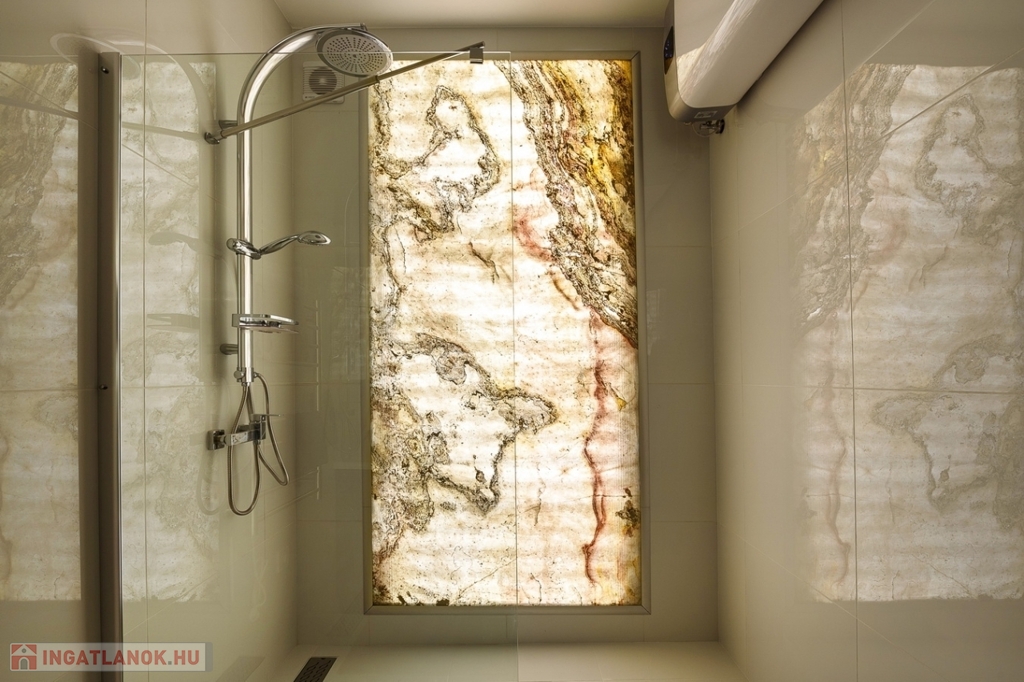 • Projektor és megvilágított slate light a fürdőben, elegáns részletek mindenhol