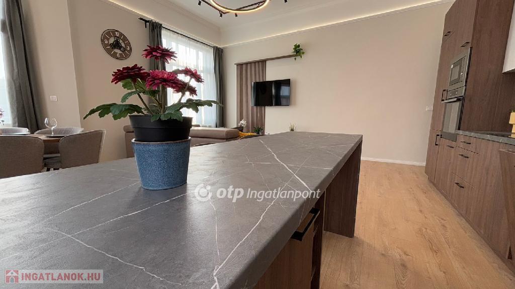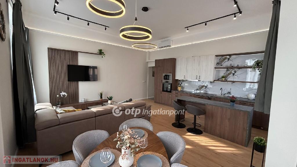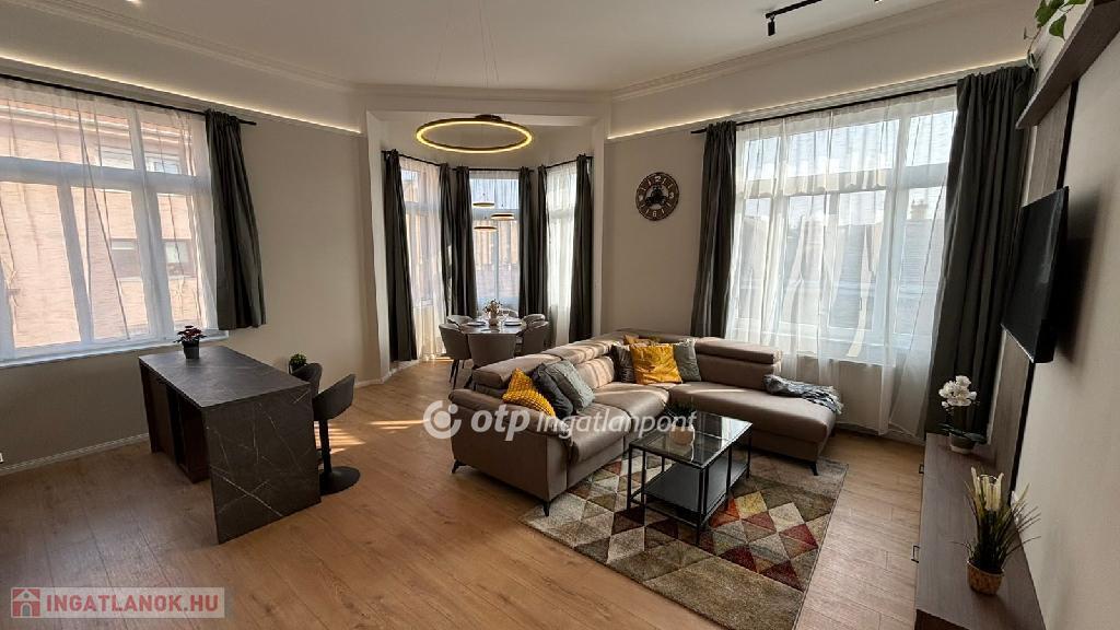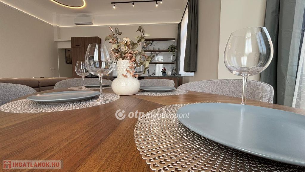 Eladó egy 124 nm-es, teljeskörűen és igényesen felújított lakás egy szép, liftes társasház harmadik emeletén. A minőségi anyagokkal végzett felújítás során a praktikum és az elegancia tökéletes egyensúlyára törekedtek, így egy tágas, világos, jól átgondolt elrendezésű otthon született. A nappali és a konyha egy térben kapott helyet, így kiváló közösségi élményt nyújt, míg a négy külön nyíló hálószoba biztosítja a család minden tagjának a nyugalmat.